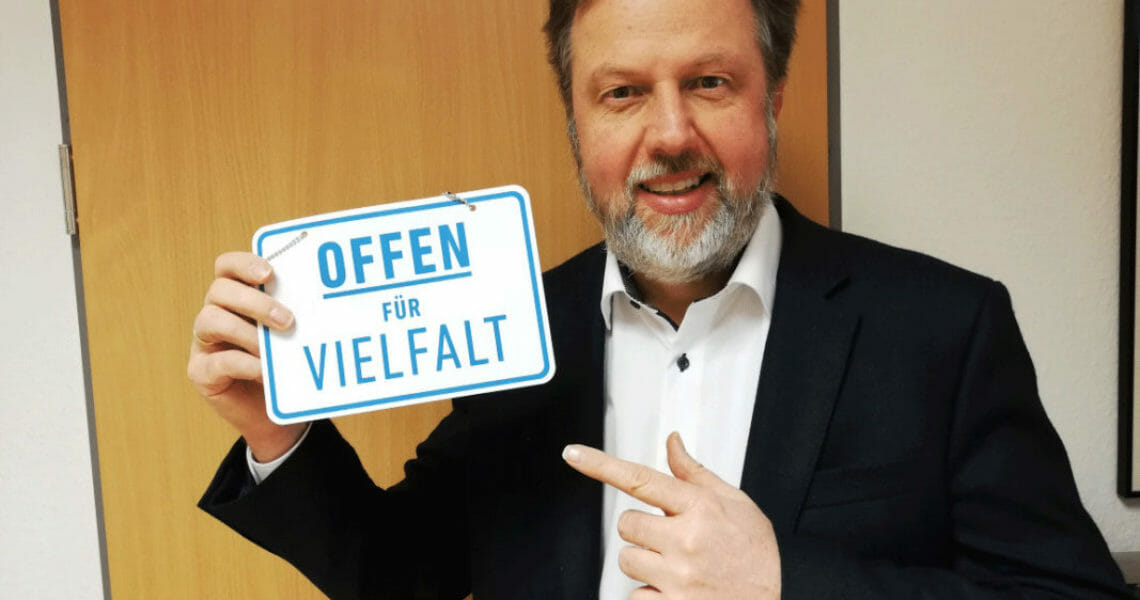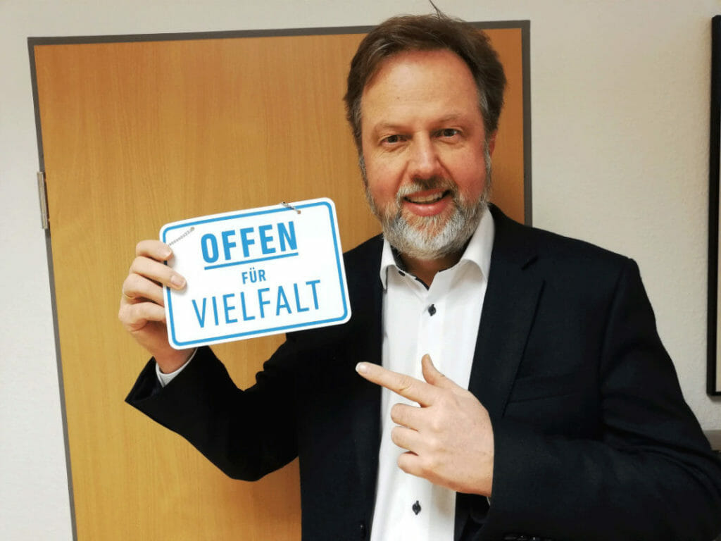 … und zeigt als Erster im Kirchenkreis das Türschild der Initiative „Offen für Vielfalt – Geschlossen gegen Ausgrenzung“. Er sagt dazu: „Offenheit heißt für uns, den Nächsten zu sehen – unabhängig von Geschlecht, Ethnie, sozialem Stand oder Religionszugehörigkeit“. Der Dekan ...