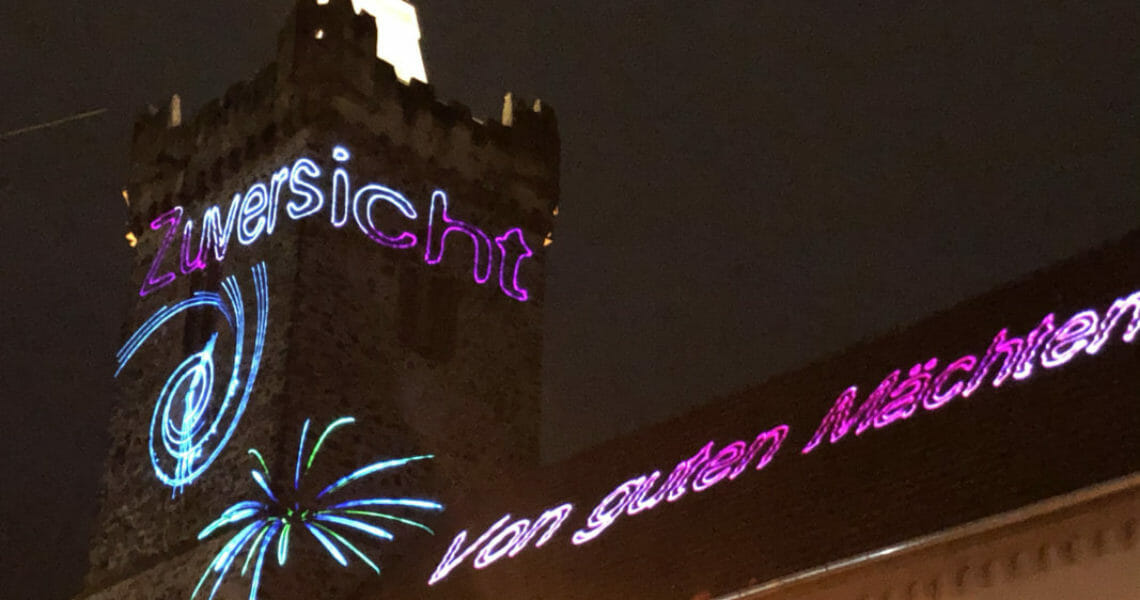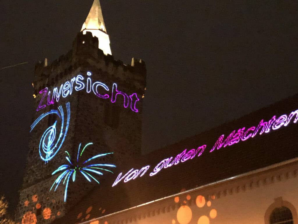 Manchmal braucht es ein Wort, das Licht wird. Zu sehen und zu lesen an Silvester und Neujahr von 18-20.45 Uhr an der Jakobuskirche. Zurück zur Seite der Jakobuskirche Bruchköbel.