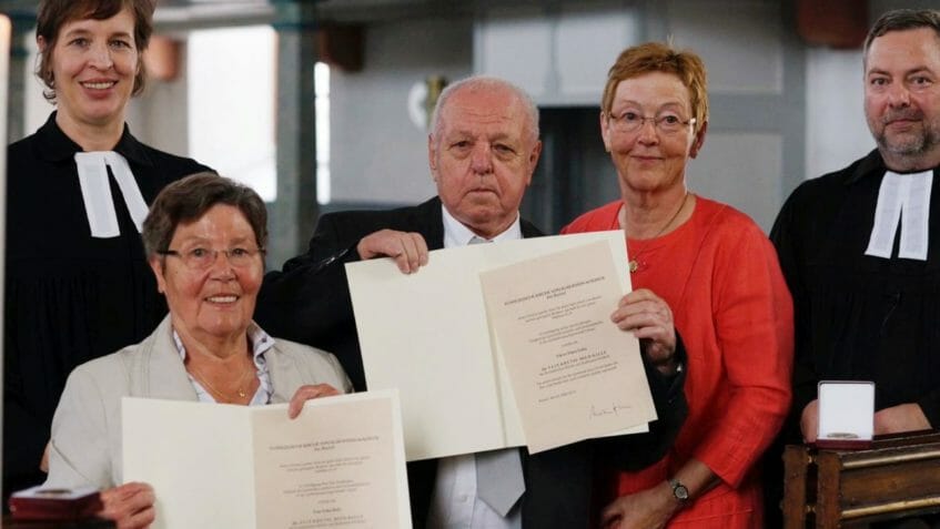 Für ihr ehrenamtliches Engagement in der Gehörlosenseelsorge verlieh Gudrun Levin, Präses der Kreissynode im Kirchenkreis Hanau, die Elisabeth-Medaille der Evangelischen Kirche von Kurhessen-Waldeck an Erika Reitz und Hans Luley. Beide sind jahrzehntelang im Gemeindevorstand der Gebärdensprachgemeinde Hanau aktiv.