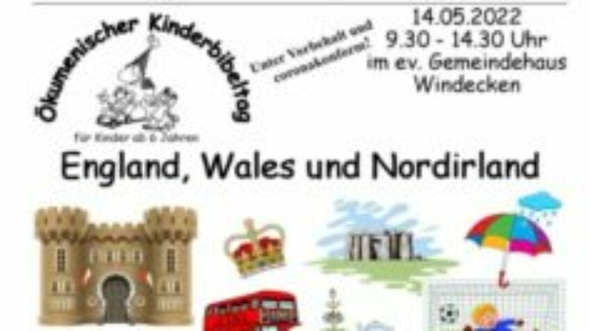 Passend zum diesjährigen Weltgebetstag wollen wir mit euch gemeinsam England, Wales und Nordirland kennenlernen. Natürlich gibt es wieder Spiele, Geschichten, Basteleien und ein passendes Essen.