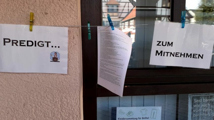 Digital zugänglich sind derzeit die Passionsandachten, die überwiegend von Ehrenamtlichen gestaltet und jeden Mittwoch ab 19 Uhr ins Netz gestellt werden. Wem das Digitale nicht so liegt, der kann sich bei einem Spaziergang von der Wäscheleine vor dem Gemeindehaus eine „Predigt zum Mitnehmen“ pflücken. Auch in der Offenen Kirche liegen die Texte aus.