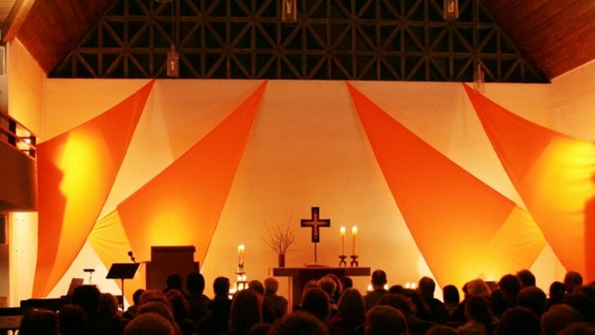Die Kirche in Bischofsheim ist wieder mit zahlreichen Kerzen und orangefarbenen Stoffbahnen ausgestattet, die die unverwechselbare meditative und besinnliche Stimmung erzeugen. Statt der Predigt wird es eine Phase der Stille geben. Der vierstimmige sich oft wiederholende Gesang macht diesen Abend vollends zu einem Gottesdiensterlebnis der etwas anderen Art.